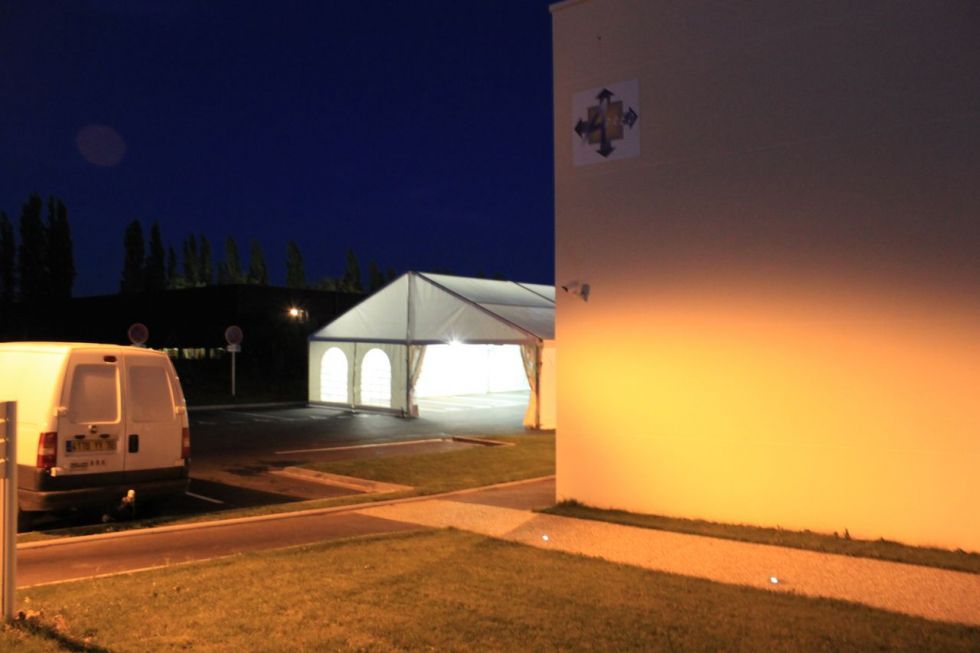 Pour l'inauguration de ce nouveau bâtiment la société Touareg a Installé une structure de 150m² sans plancher, mais avec éclairage, car la manifestation ce passée en soirée sur le parking de l'établissement a Bois-Guillaume prés de Rouen 76