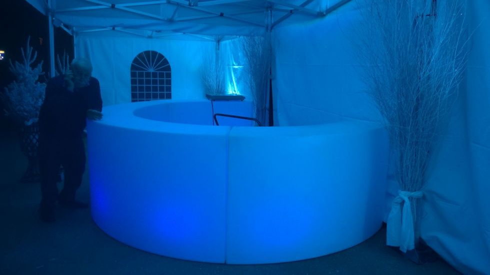Le bar lumineux est modulaire, tout en courbes, réalisé en polyéthylène blanc, il se prête parfaitement aux espaces en plein air allant des jardins privatifs aux locaux tendance ou a l'intérieur d'une tente. Un heureux mariage esthétique et fonctionnel.