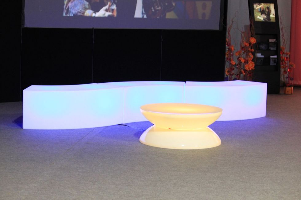 En complément des banquettes lumineuses ou des canapés cuirs ou tissus la table basse lumineuse en location est idéale pour une ambiance chaude et sympathique, elle a un design élégant.