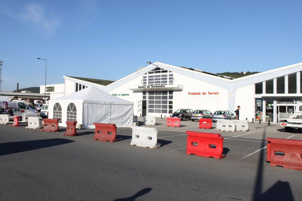 La société Demolin Normandie a choisi de faire une journée de présentation de ces différents chariots élévateurs au MIN de Rouen pour les partenaires du marché et tous les clients présent ce jour, pour cela Touareg a monté une tente city cottage de 25m² avec lestage pour ne pas faire de trous dans le parking.