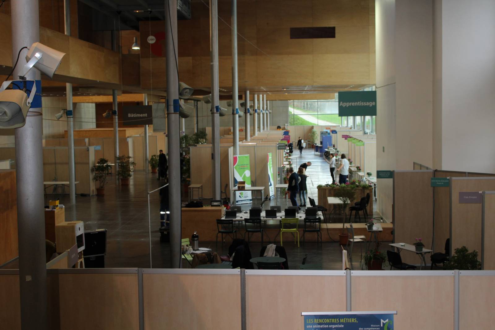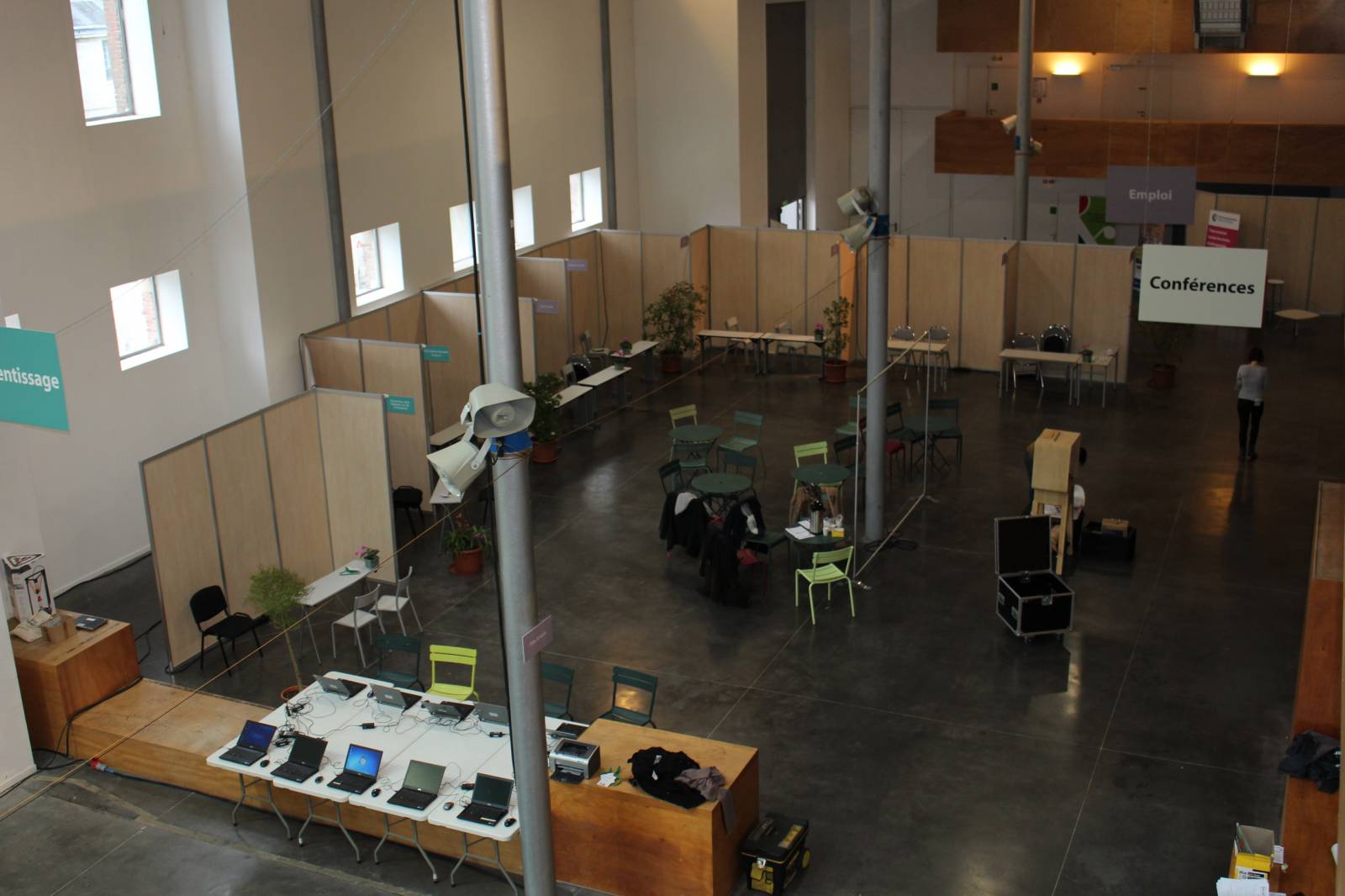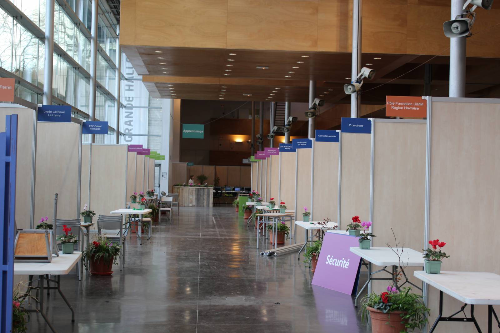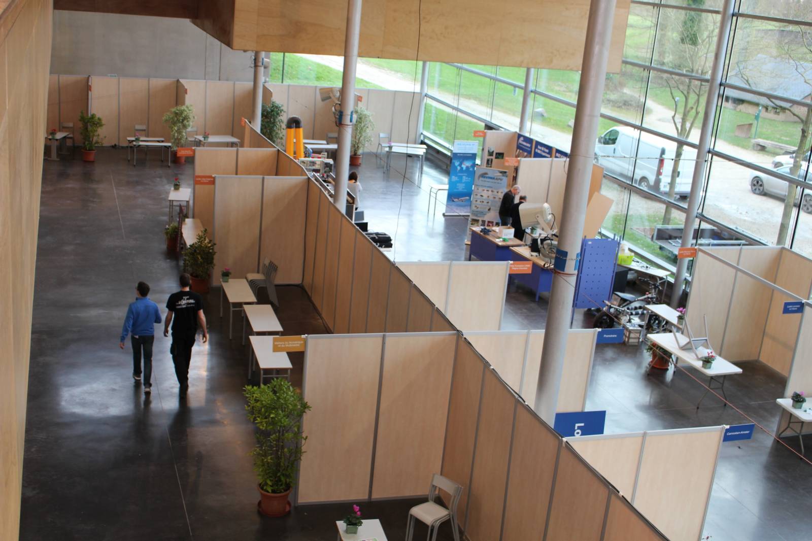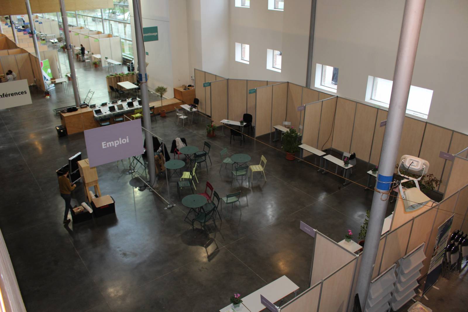 Installation des cloisons modulaires pour la création des stands des différentes entreprises recruteuses