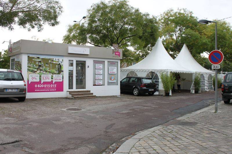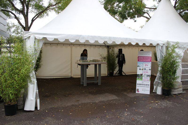Touareg a installé 50m² de tente Garden Cottage pour un cocktail Boulevard de l'Europe a Rouen pour le lancement d'un Programme immobilier. Location d'accessoire : éclairages, Bambous, Sono.