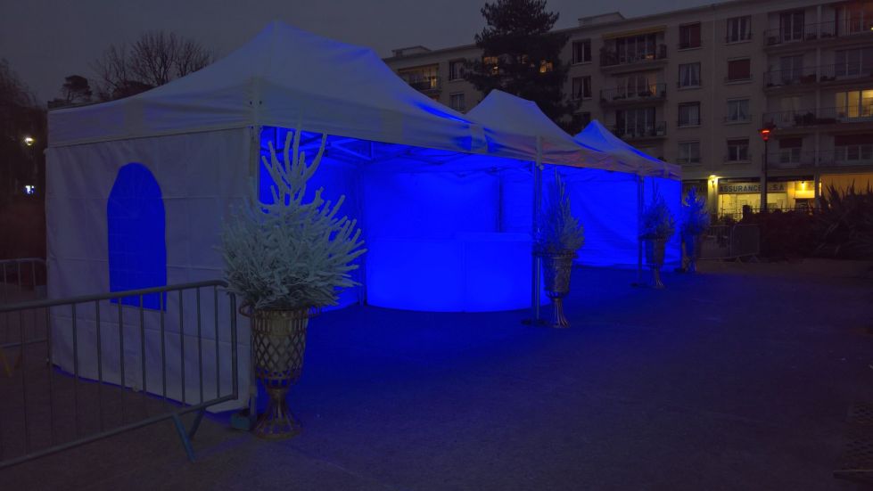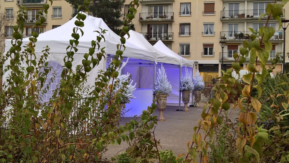 Installation de tentes avec un décor de noël pour des événements rapides